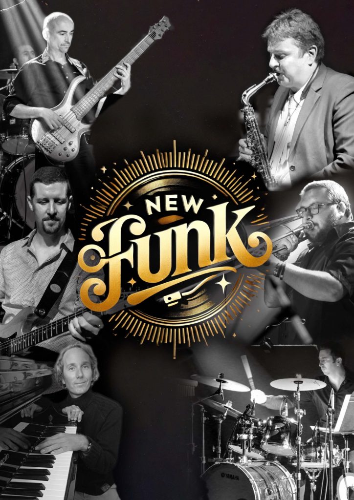 Carried by the powerful winds of Grégory Letombe (saxophone) and Clément Hoogewys (trombone), the unstoppable groove of Laurent Follet (bass) and Cyprien Soisse (drums), as well as the intoxicating rhythms of Sylvain Sauvage (guitar) and the elegance of the playing of Benoit Petit (piano), the group New Funk takes you on a musical journey where funk is king.